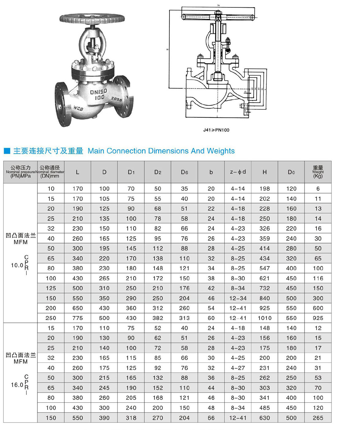 J41、L41(H、Y、W、N、F) -PN100、160 手動(dòng)法蘭截止閥、節(jié)流閥