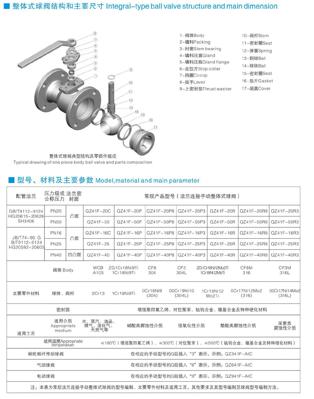 Q41、Q941、Q641、Q341(F、H、Y、W、N)- PN 16、25、40 一體式球閥